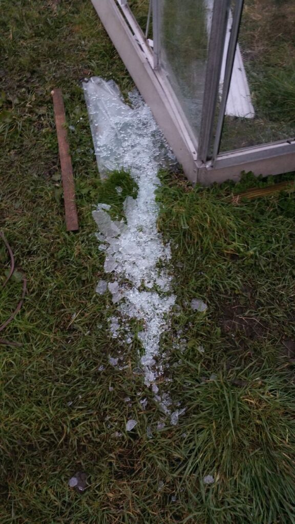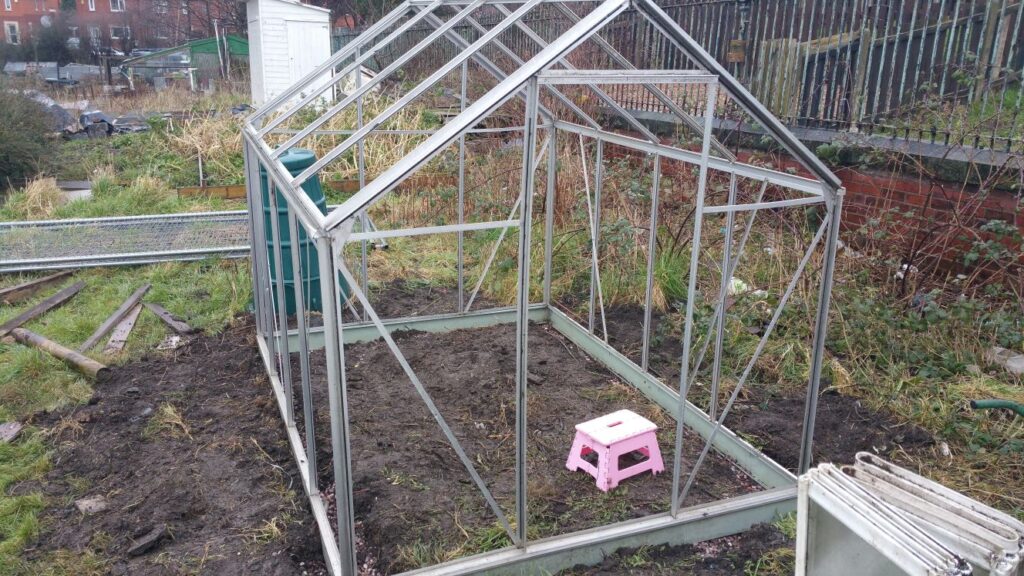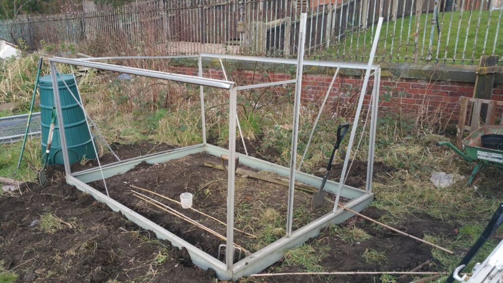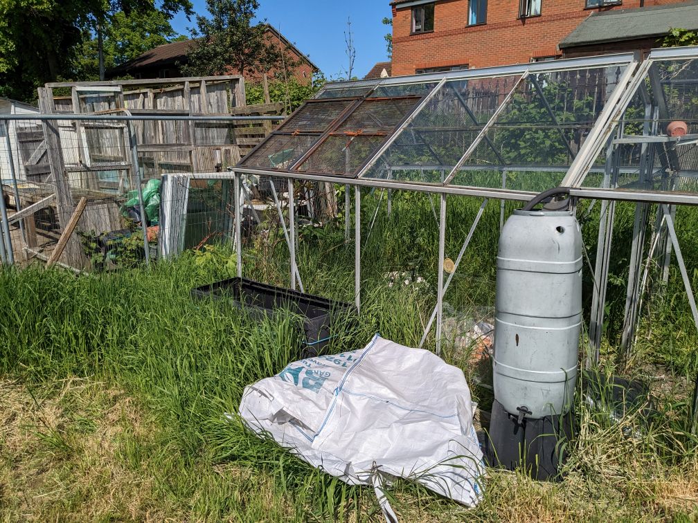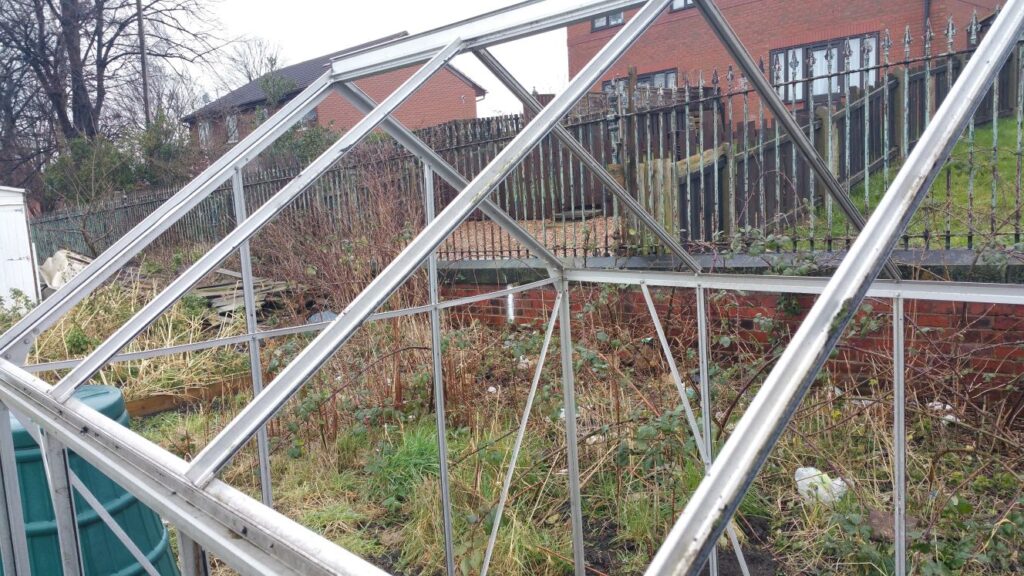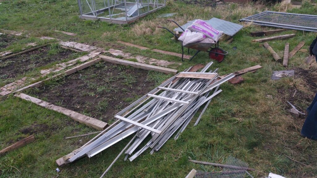 I don’t understand why someone stole the glass out my greenhouse, but didn’t nick my mower when the shed blew over. It’s very odd. Might write my plot number across the plastic panels when I get them.