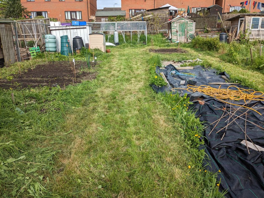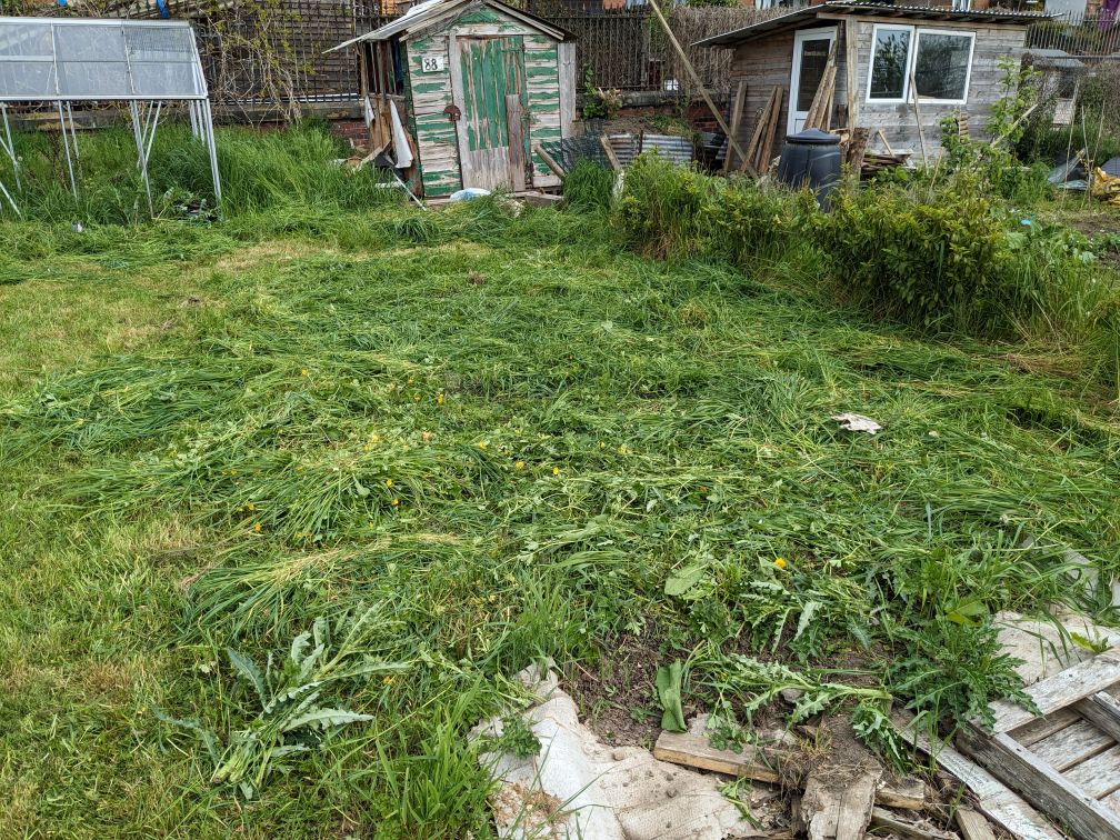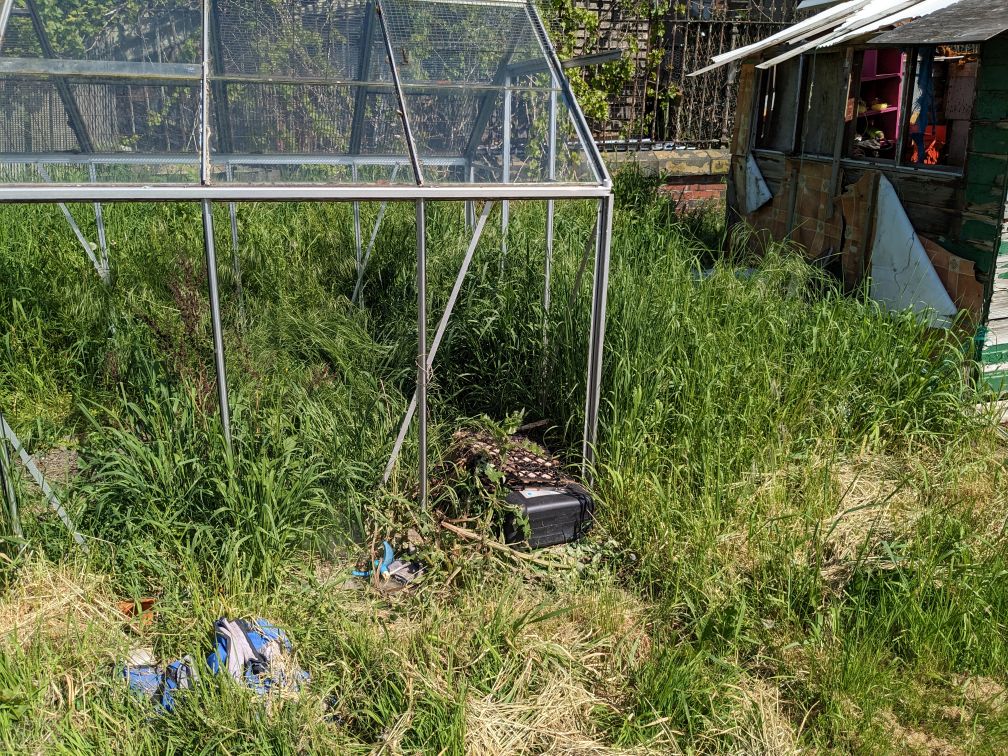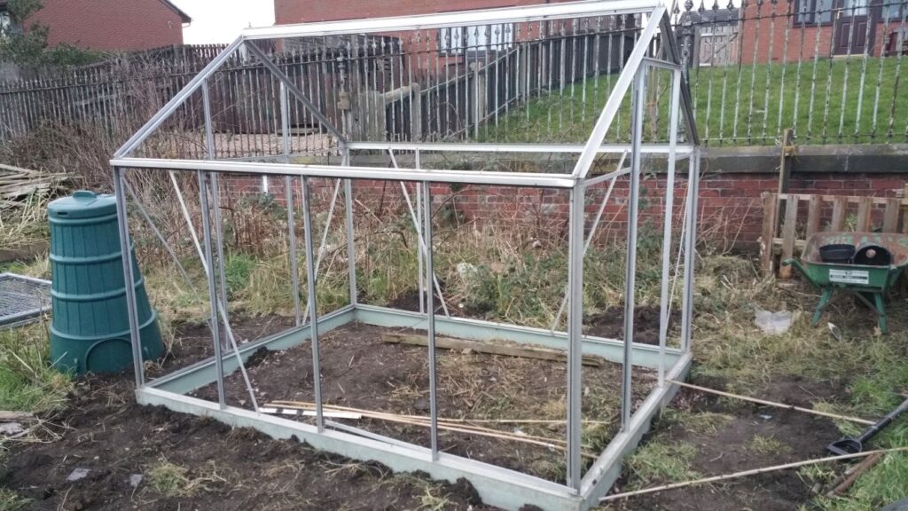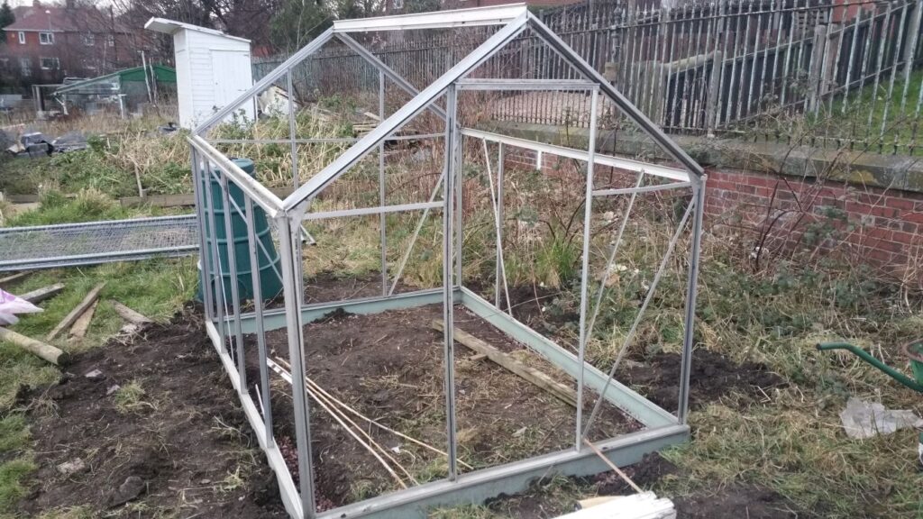 I don’t understand why someone stole the glass out my greenhouse, but didn’t nick my mower when the shed blew over. It’s very odd. Might write my plot number across the plastic panels when I get them.
