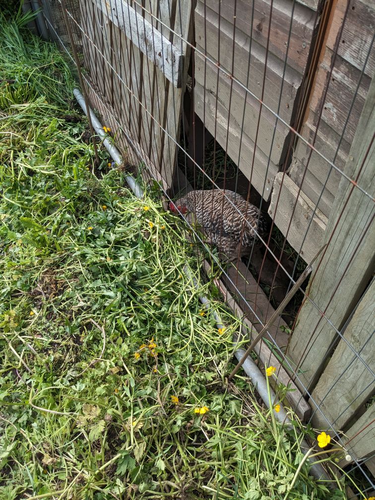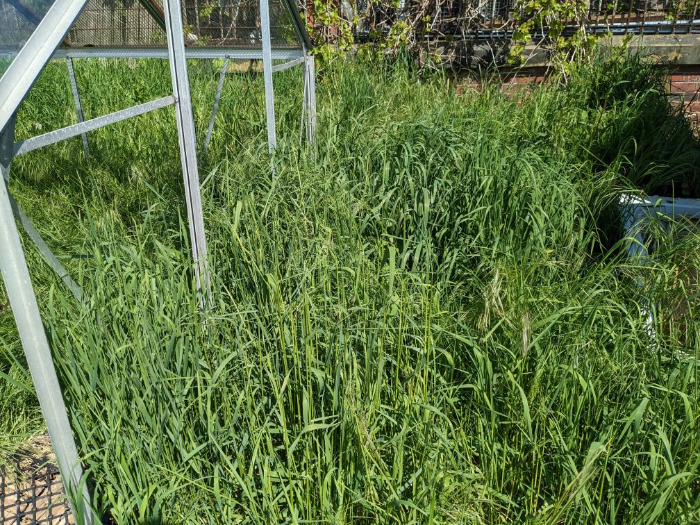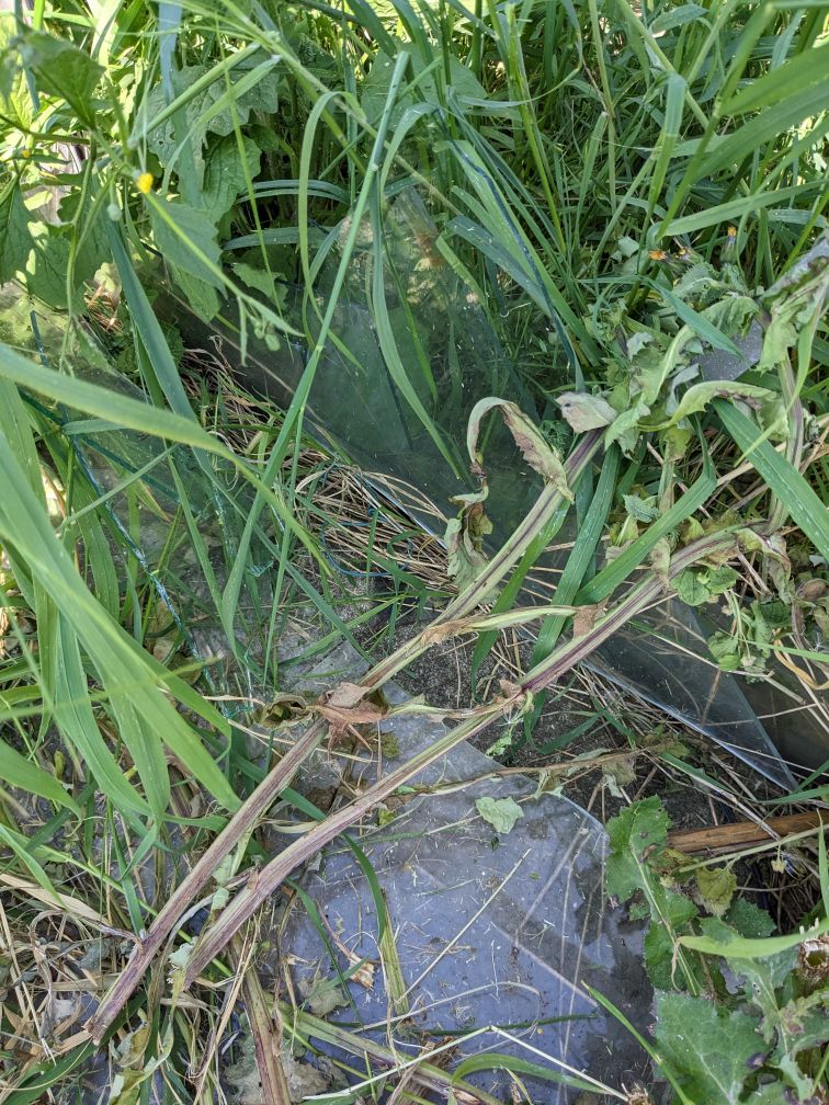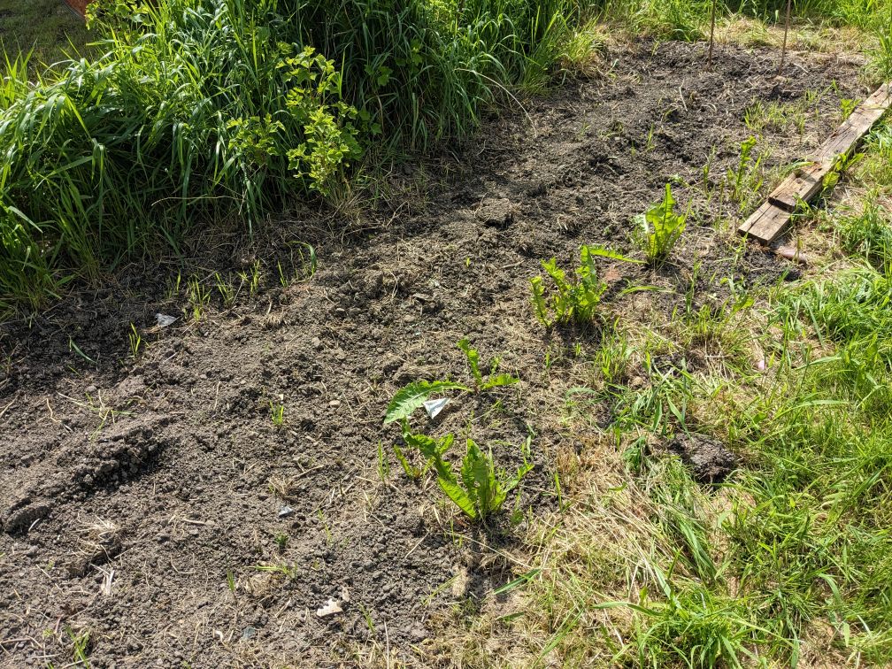 Some things I’d forgotten about are still growing. There’s a forgotten about leek or onion and some rhubarb. I moved and split the rhubarb a few years ago and thought I’d killed it. I guess not. Keep going rhubarb, you’ll smother out that grass!