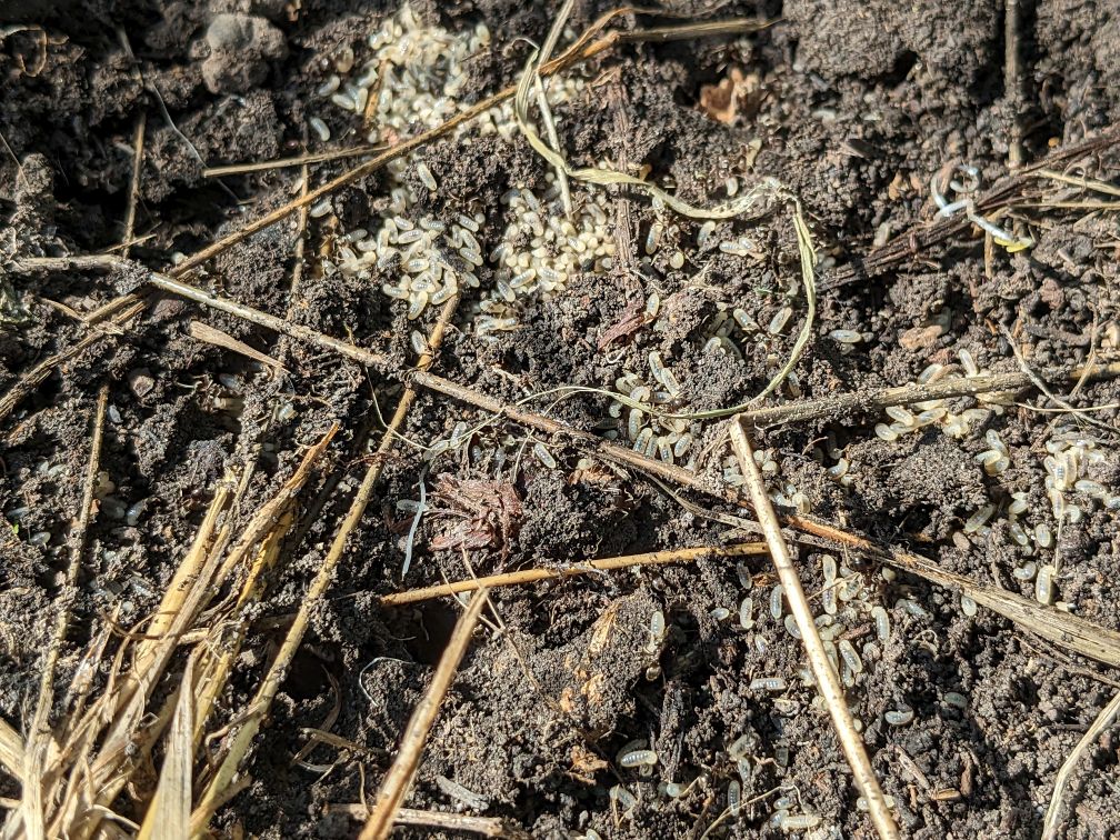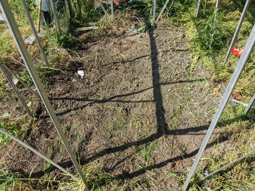 Once the outside was “done” I ventured inside. Since the soil was so dry I found a rake and a lot of manual labour was the way to clear things. Except the ants, they seem to live in the corner now. Also I discovered the strimmer’s metal blade is quite sharp.