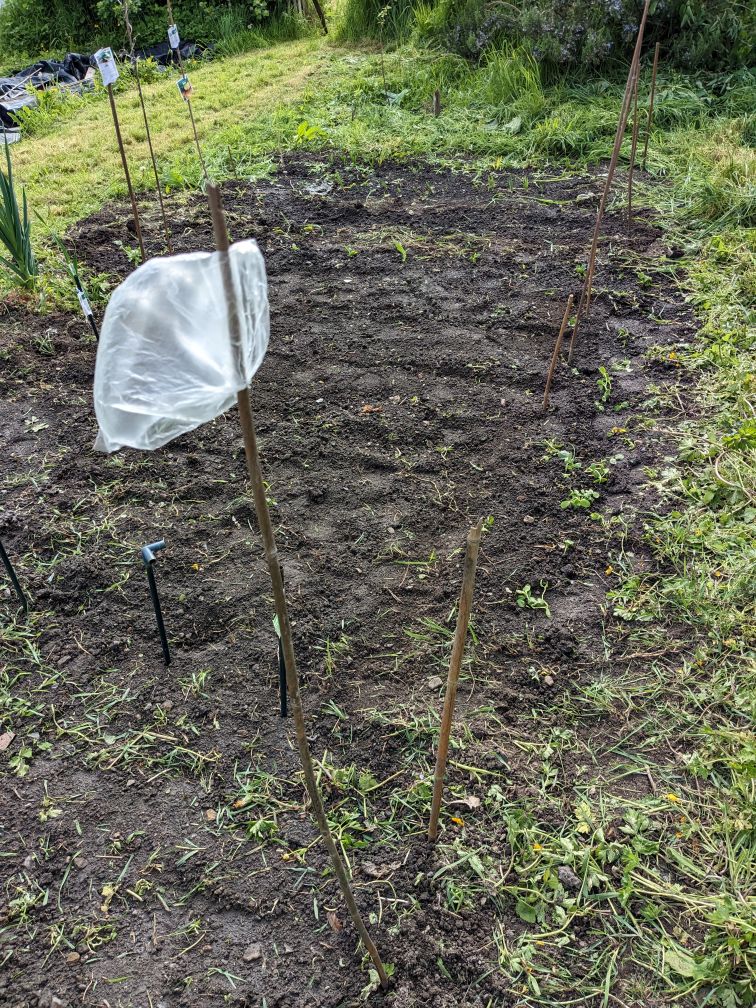 Last year I farted about trying to start seeds early in pots at home. It never seemed that successful and involved more farting about hardening the plants off to the outdoor elements. So this year I just waited until the weather warmed up enough that they could go straight in the ground.