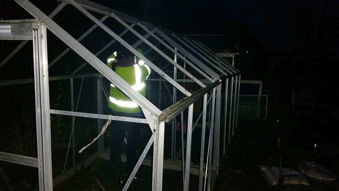 Putting it up was a bit of a mission with no instructions, half the bolts missing and it not being very square. Also it went dark…