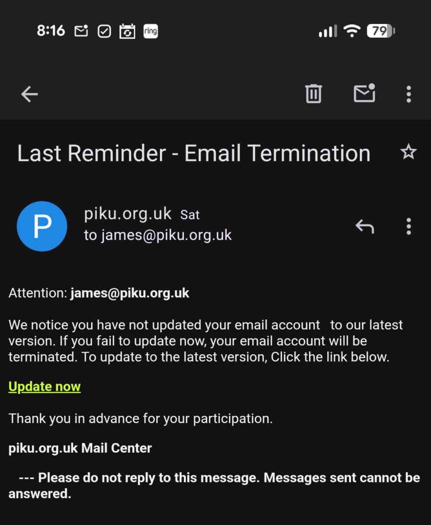 Oh no! Iv’ve sent myself an email about terminating my own service!