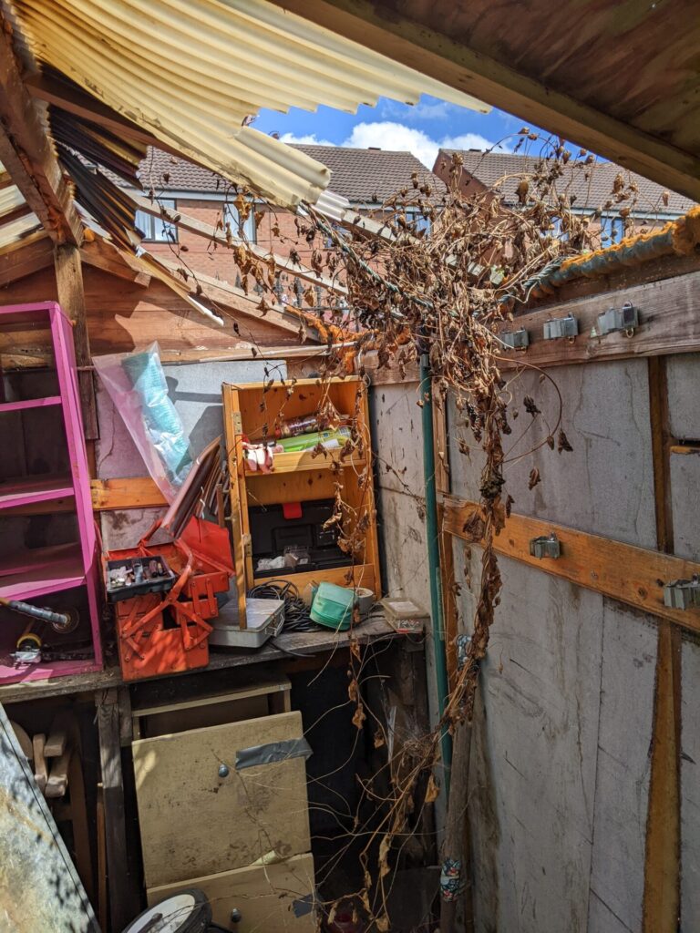 At the allotment I’ve moved the water butt so it can catch rain off the shed roof, rather than not catching rain off the greenhouse’s broken roof.